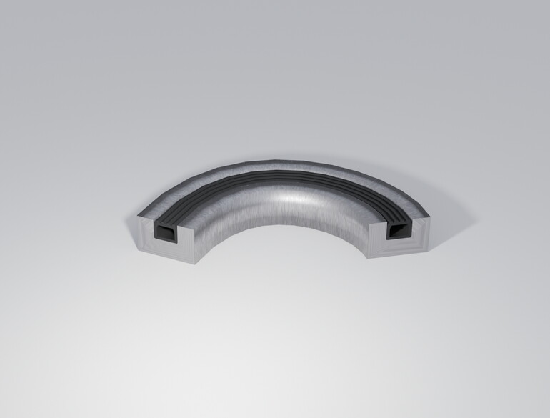 Die Dichtung muss stets in einer Nut geführt sein, damit die Ausdehnung nur in eine richtung definiert geschehen kann.